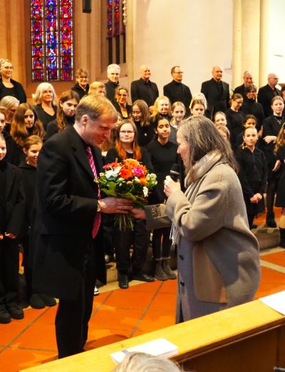 Ein Dankeschön für den Chorleiter Herrn Daniel Lembeck (Foto Hermes)