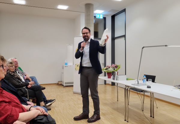 Vor Beginn der Lesung gab Christopher Heine, CEO von Hengst SE, einen tiefen Ein- und Ausblick über die Produkte und Projekte des westfälischen Filterherstellers, der weltweit produziert und agiert. Ein großer Schwerpunkt wird neben der Automobilindustrie auf Gesundheit und Raumklima gesetzt: „purifying our planet“. Dazu konnte man in der Pause eine eindrucksvolle Industrieausstellung der Firma Hengst besuchen.