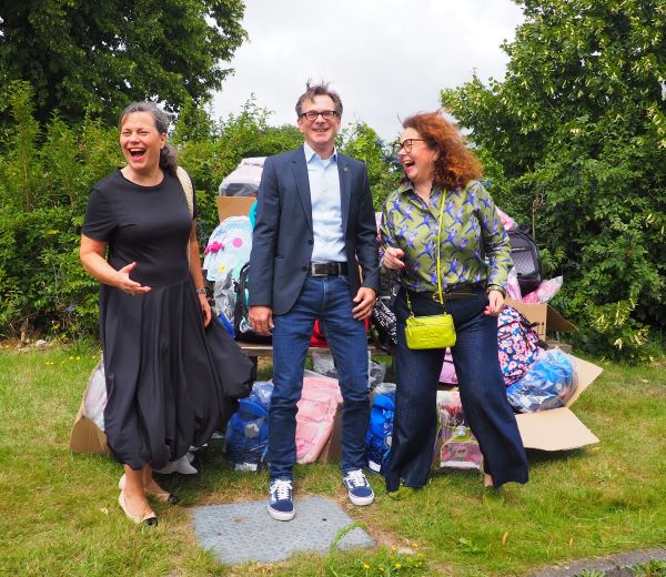 Im Sommer 2025 übergaben Mitglieder des Lions Clubs Annette von Droste Hülshoff mehr als 80 Schulranzen und Rucksäcke an die Flüchtlingserstaufnahme in Münster-Gievenbeck.